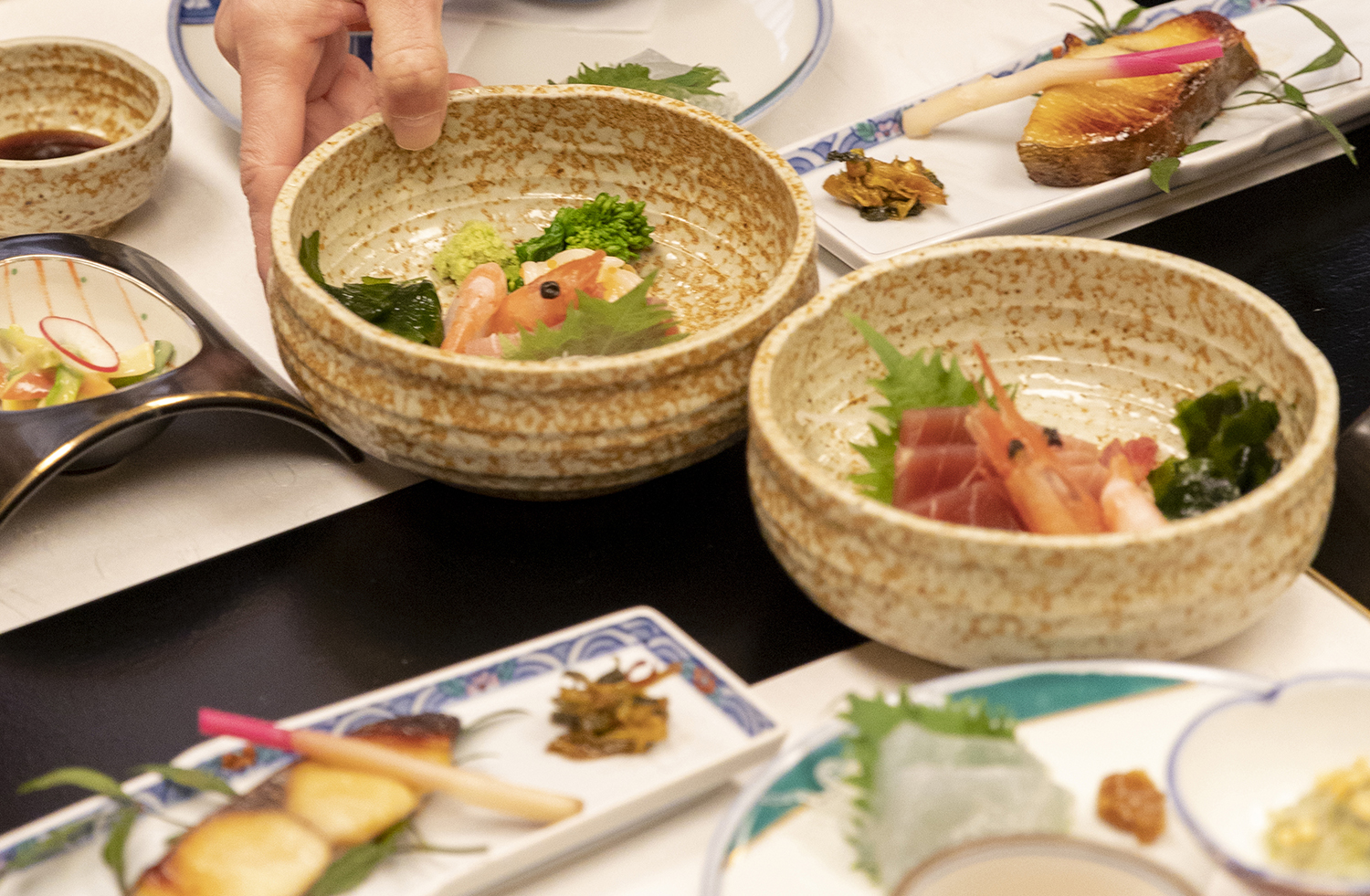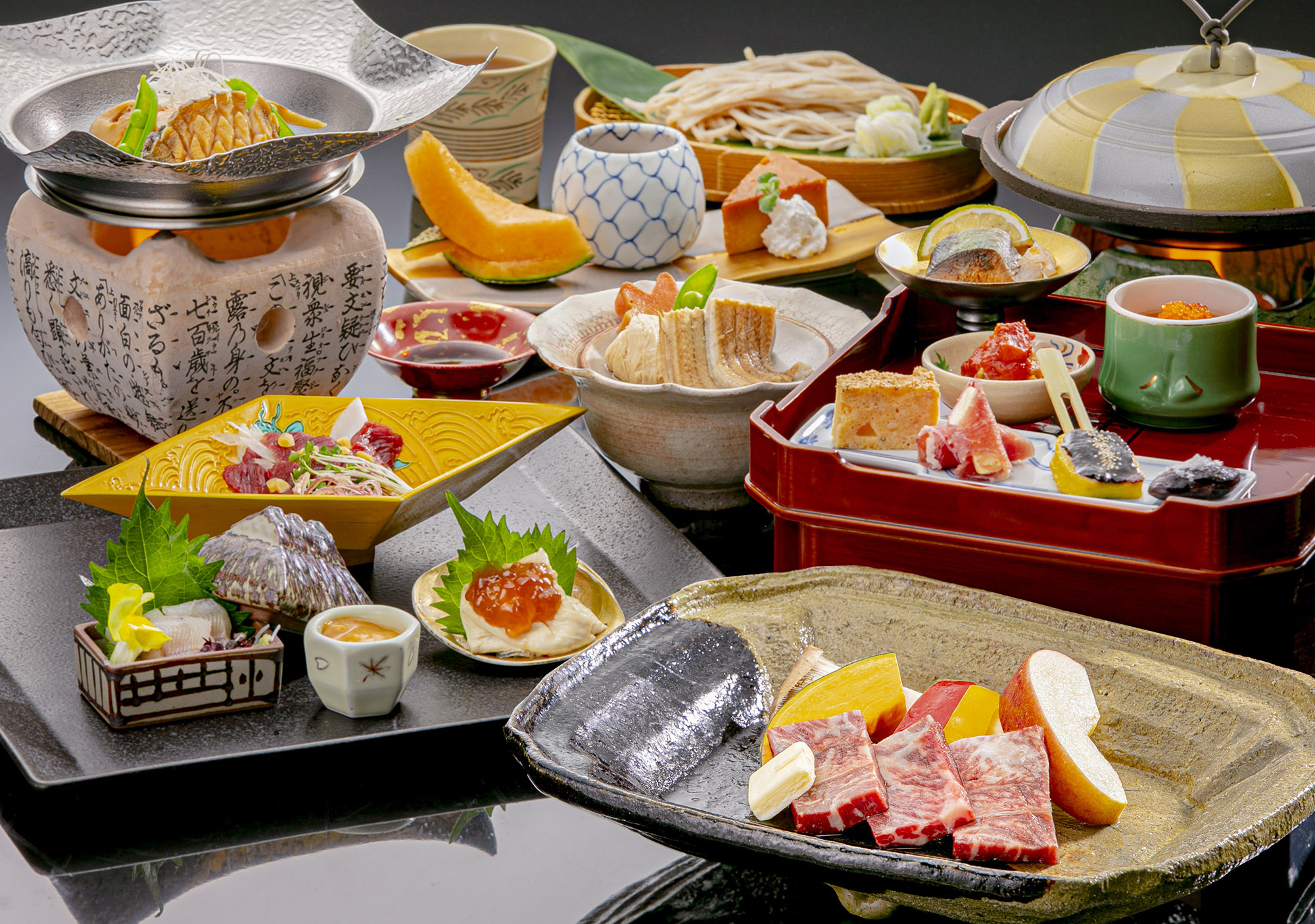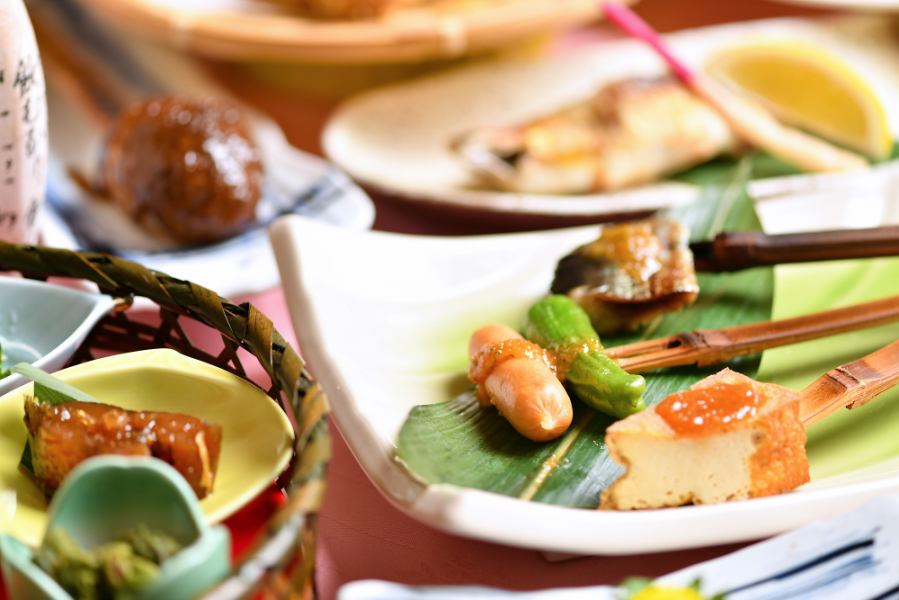 Seasonal homemade dishes using home-grown vegetables and rice, and carefully selected seafood and mountain produce.