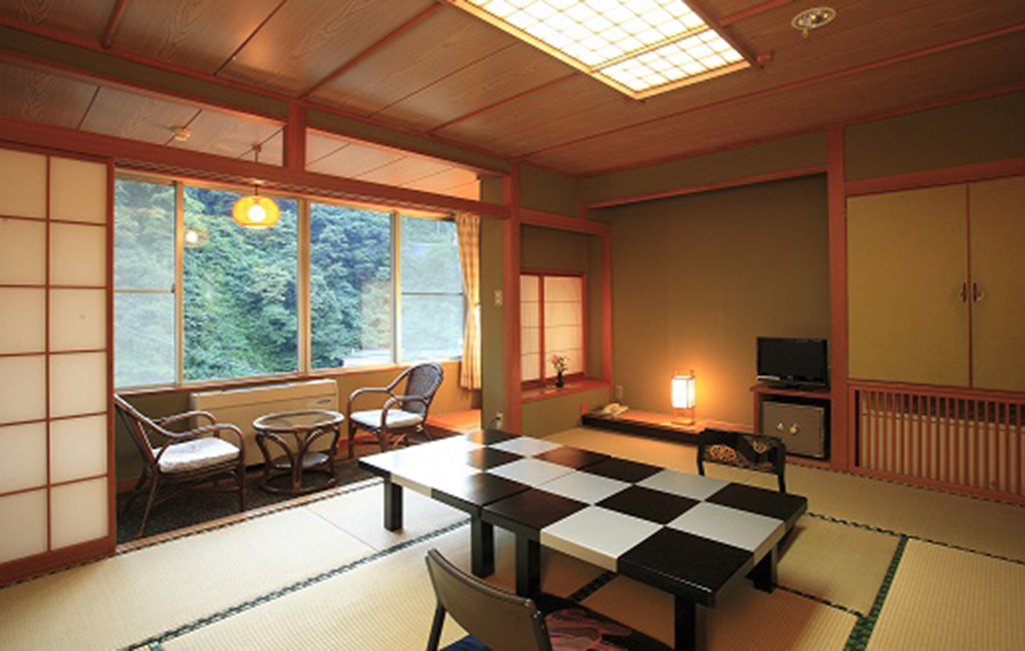 大川のせせらぎにしみじみと湧き上がる旅の情緒。風情豊かな不動館。